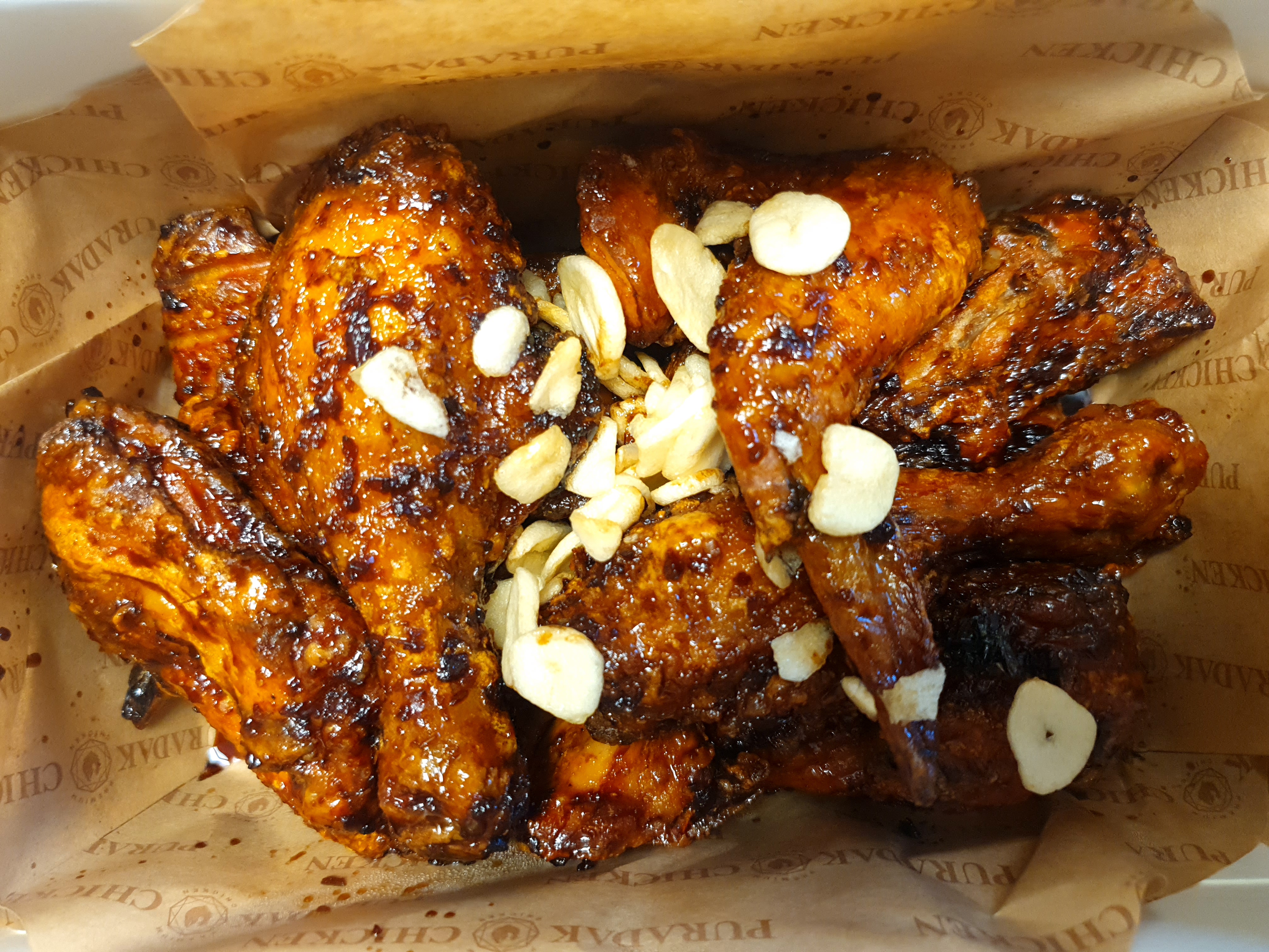 신랑도 나도 서로의 친구들과 직장 사람들에게 하도 들어서 주말 저녁을 맞이한 기념으로 한 번 먹어보기로 한 프라닥치킨. 유명 브랜드 이름을 활용해 명품치킨의 이미지를 굳힌 곳이라 사실