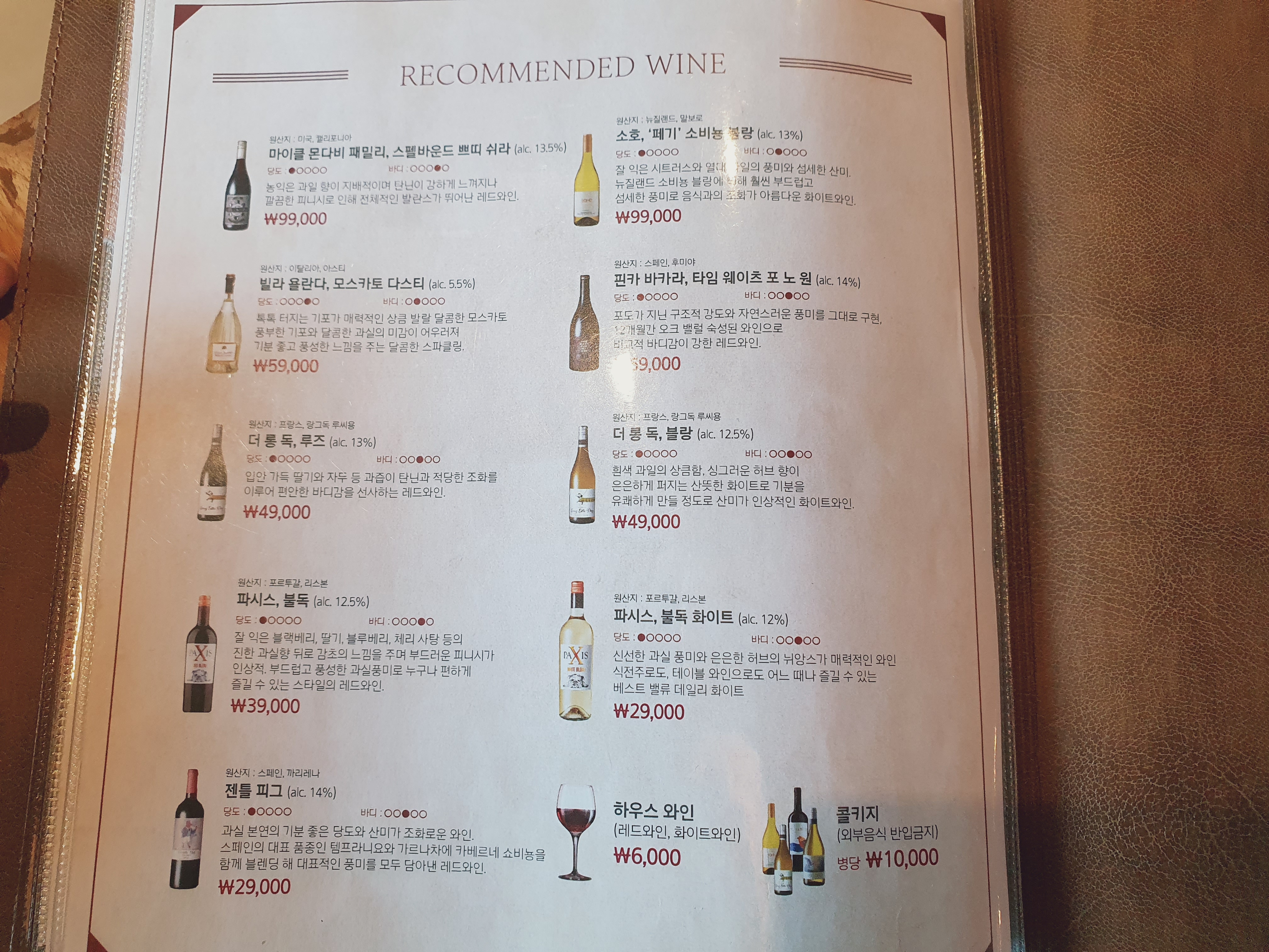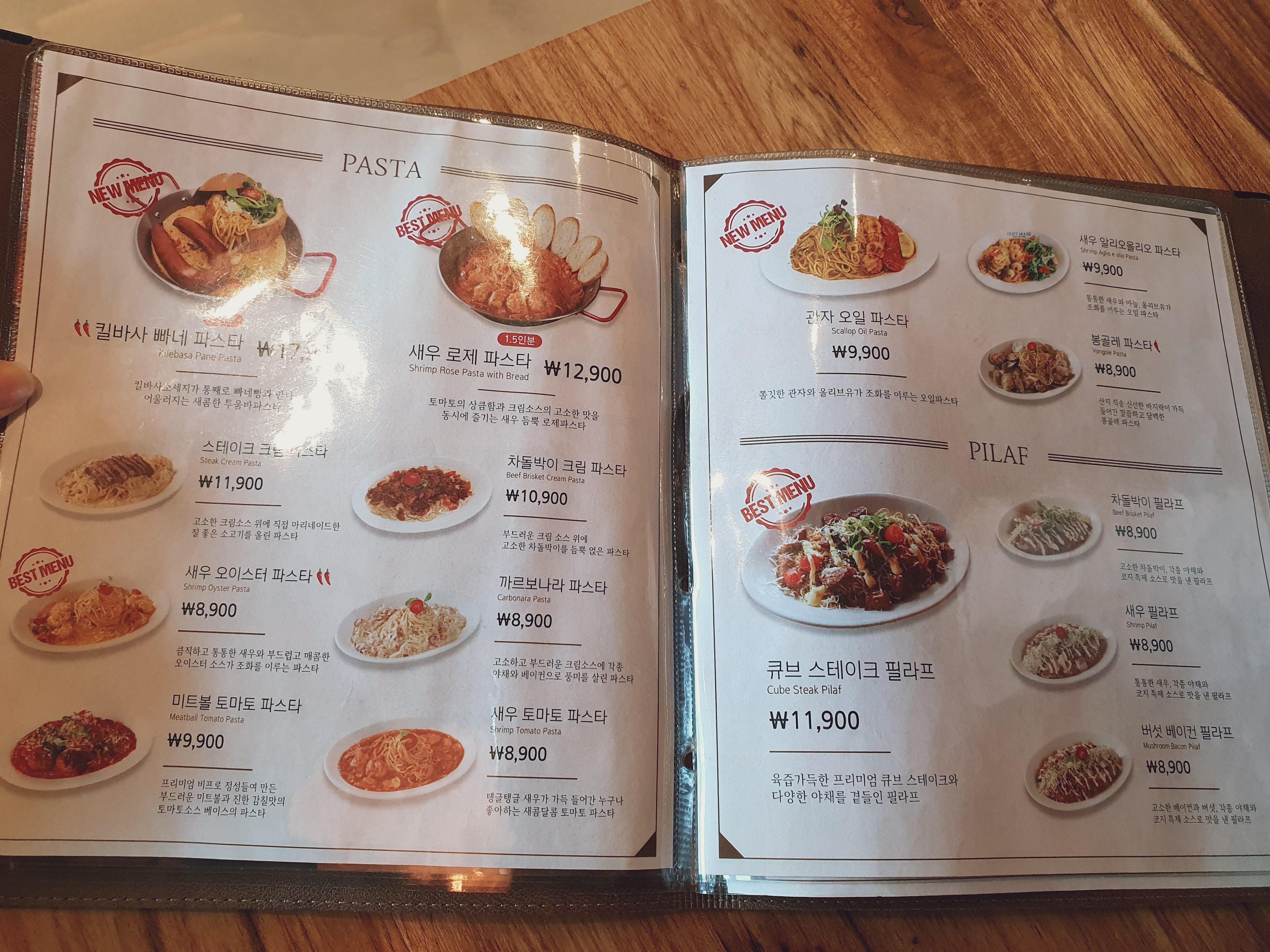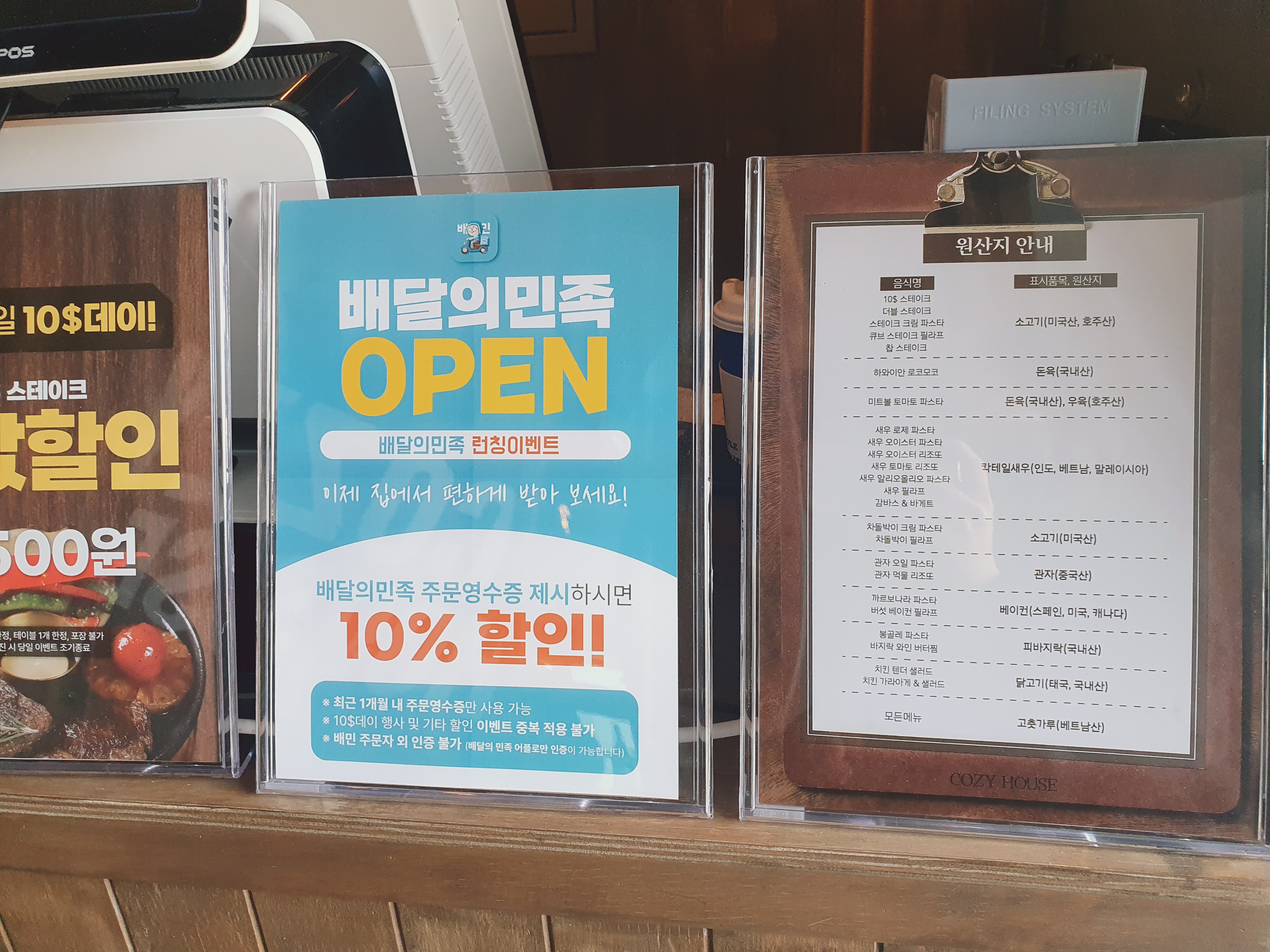 동래 코지하우스 메뉴판은
