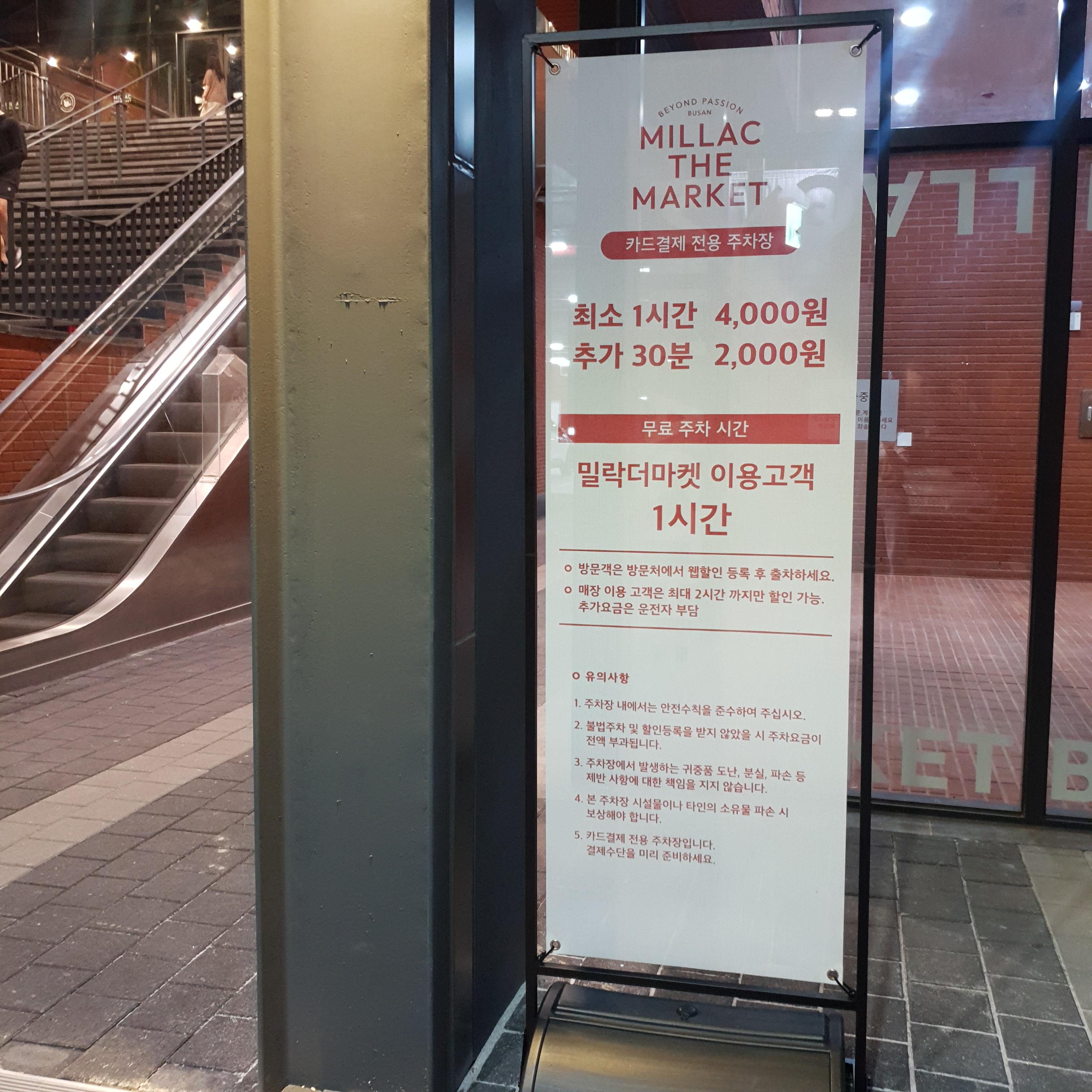 주차장에서 바라본 밀락더마켓의 모습은