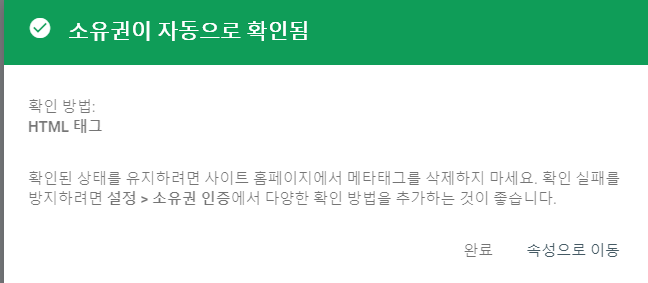 3. 소유권이 자동으로 확인되었다는 메세지가 뜨면 성공한 것이다.