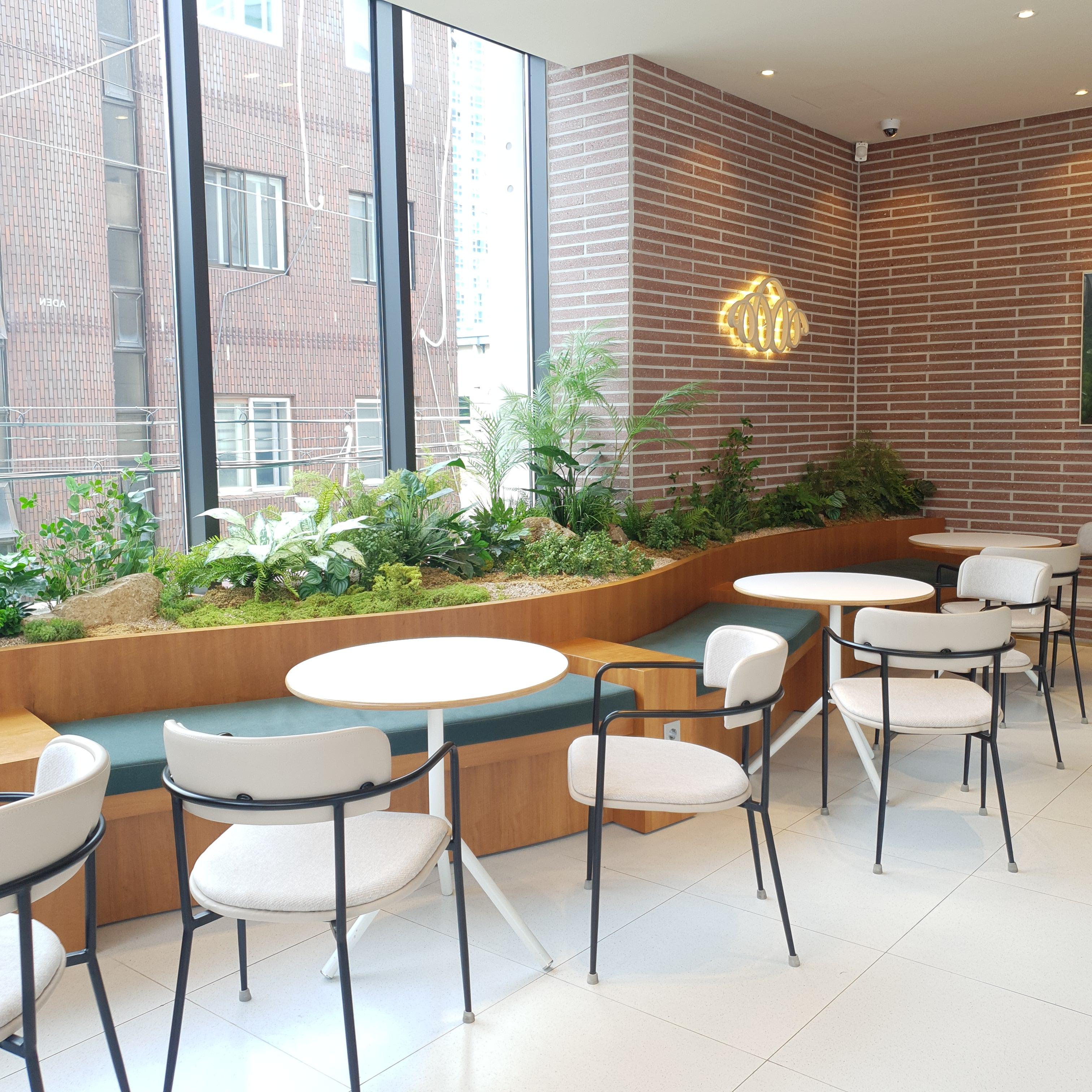 통유리의 2층짜리 카페라서 예쁘고