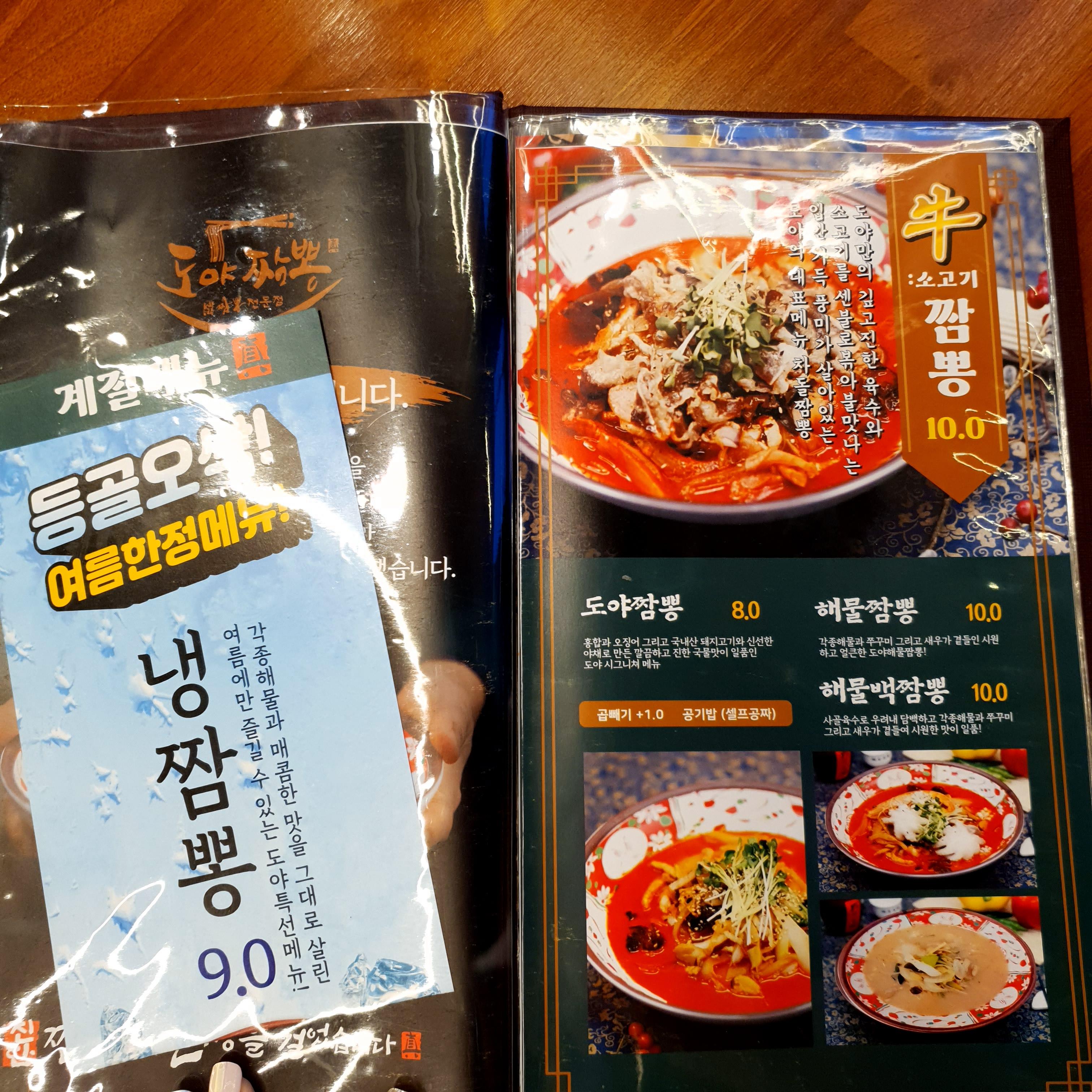 도야짬뽕 메뉴판을 보면 짬뽕은 8천 원,