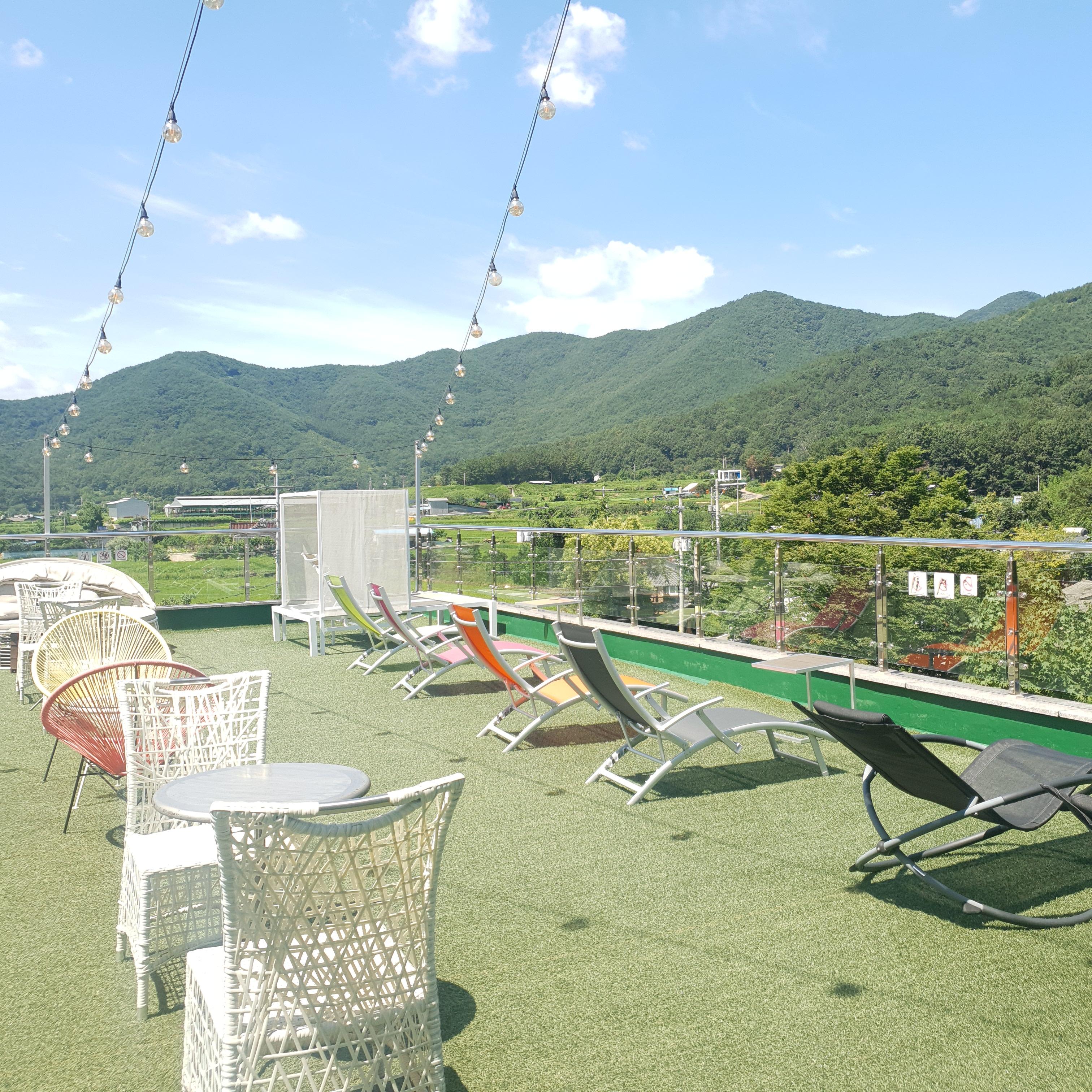 우리가 자리를 잡은 곳은 야외 테라스!