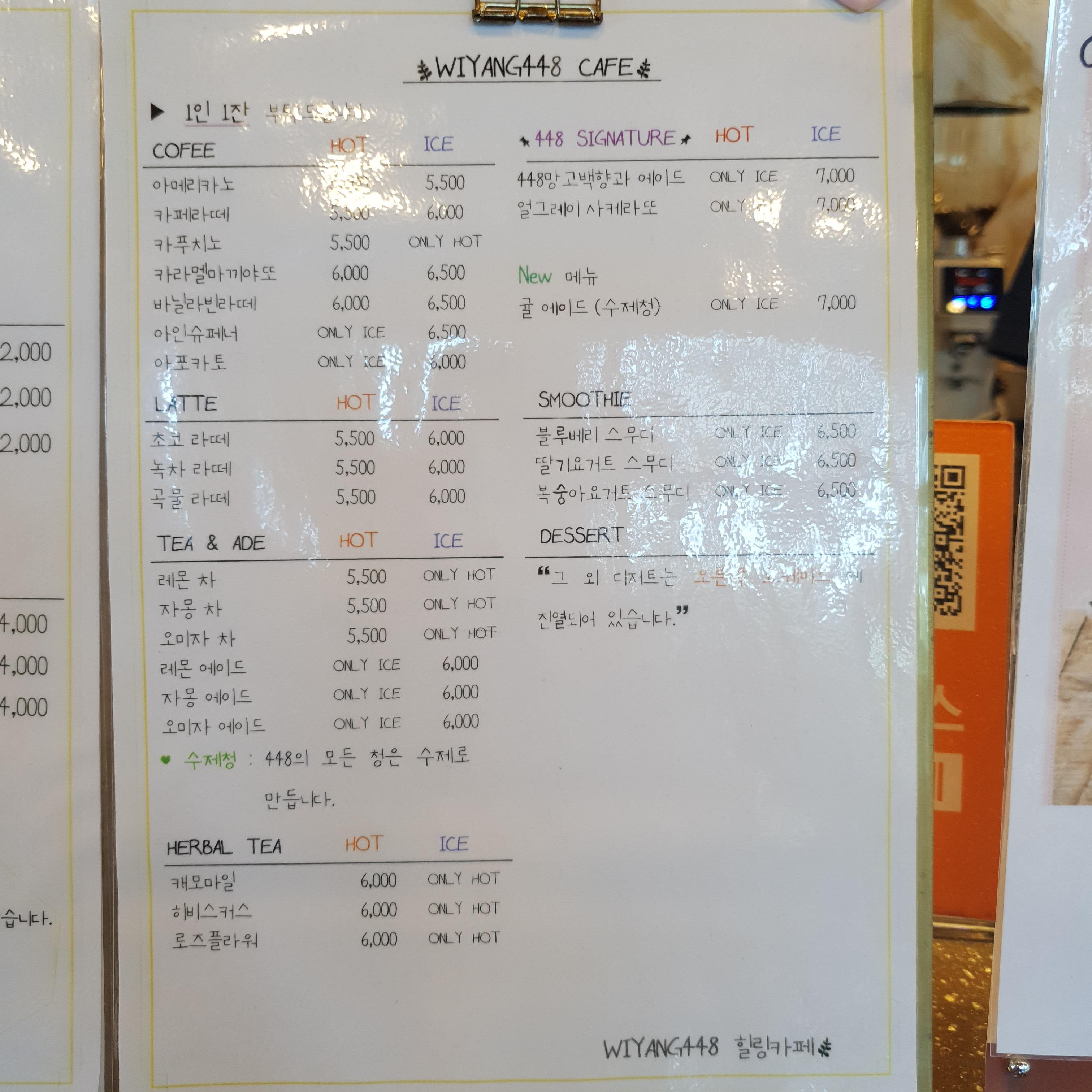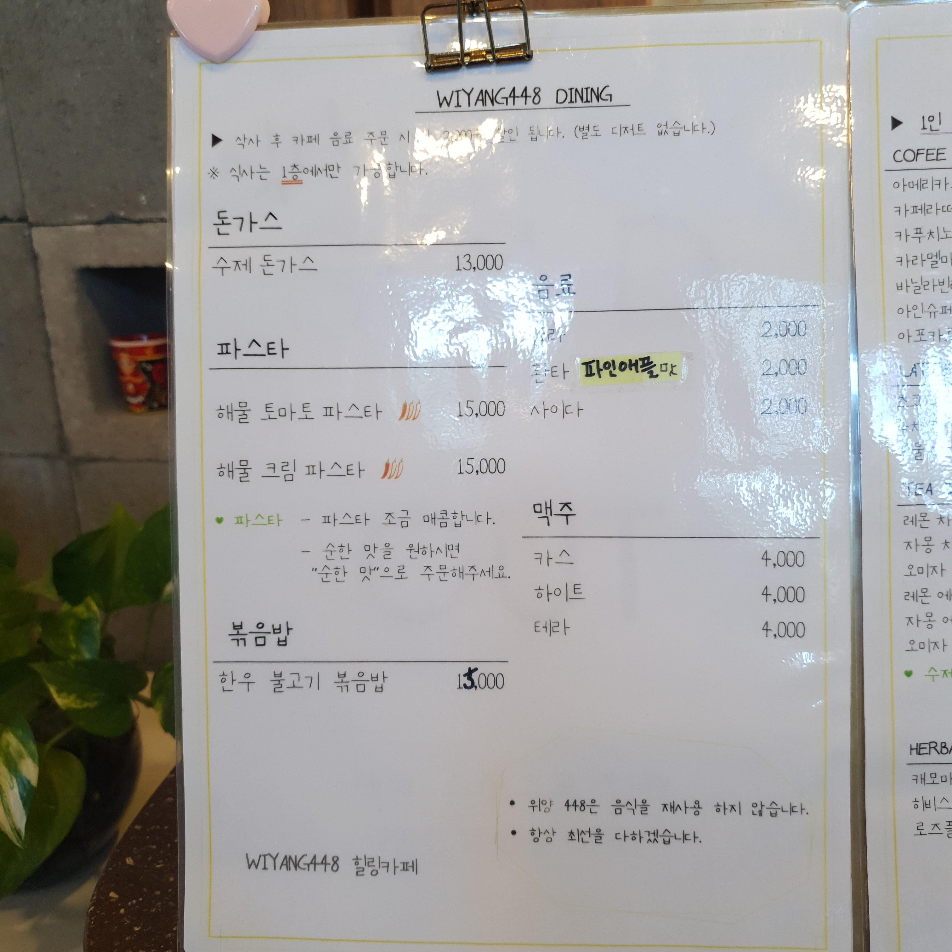 위양448 메뉴판을 보면