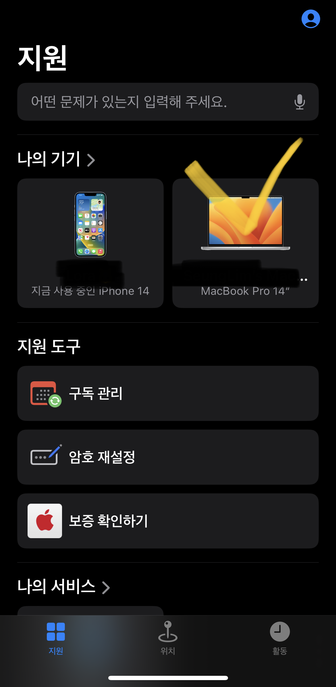 앱에 접속하면 나의 기기 목록이 뜨는데, 그 중에서 수리받을 제품을 선택하자.