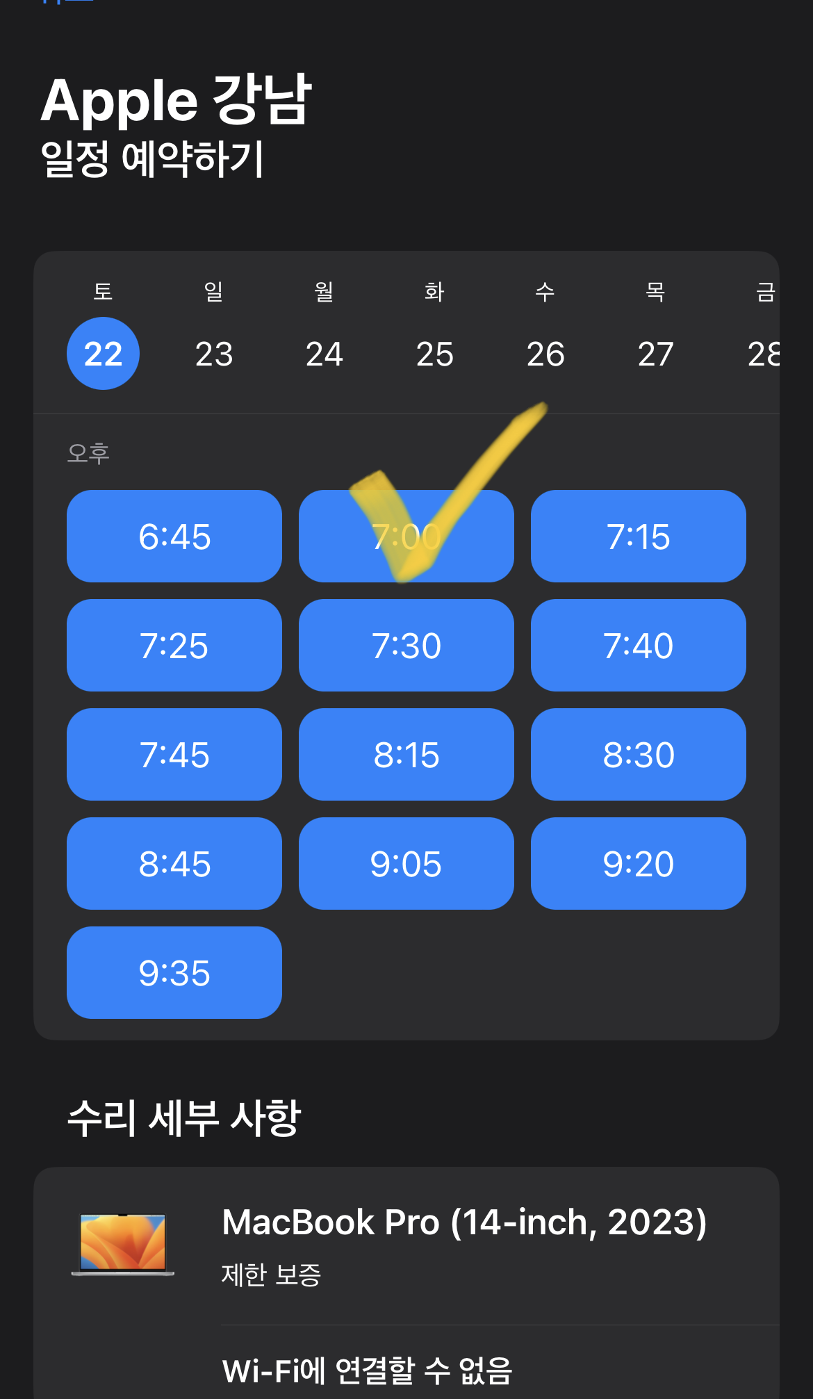 남색 옷을 입고 계신 분께 맥북 상태 확인을 위해서 왔다고 하니, 직접 스케줄을 확인해주셨다.