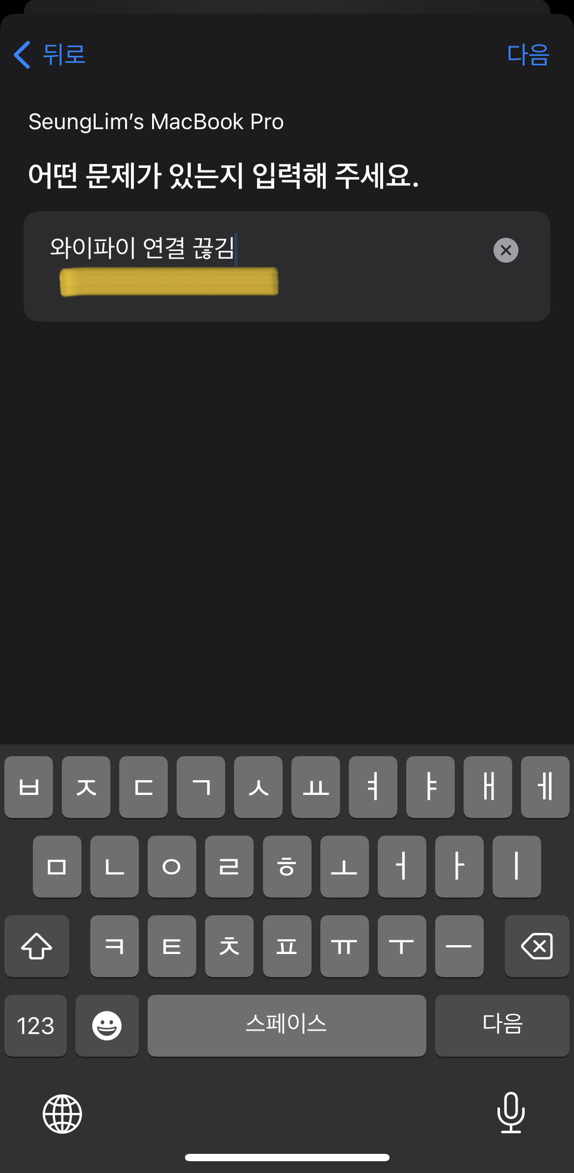 아래로 쭉 내려서 더보기 클릭->어떤 문제가 있는지 입력해주세요-> "와이파이 연결 끊김" 기재-> 다음 클릭