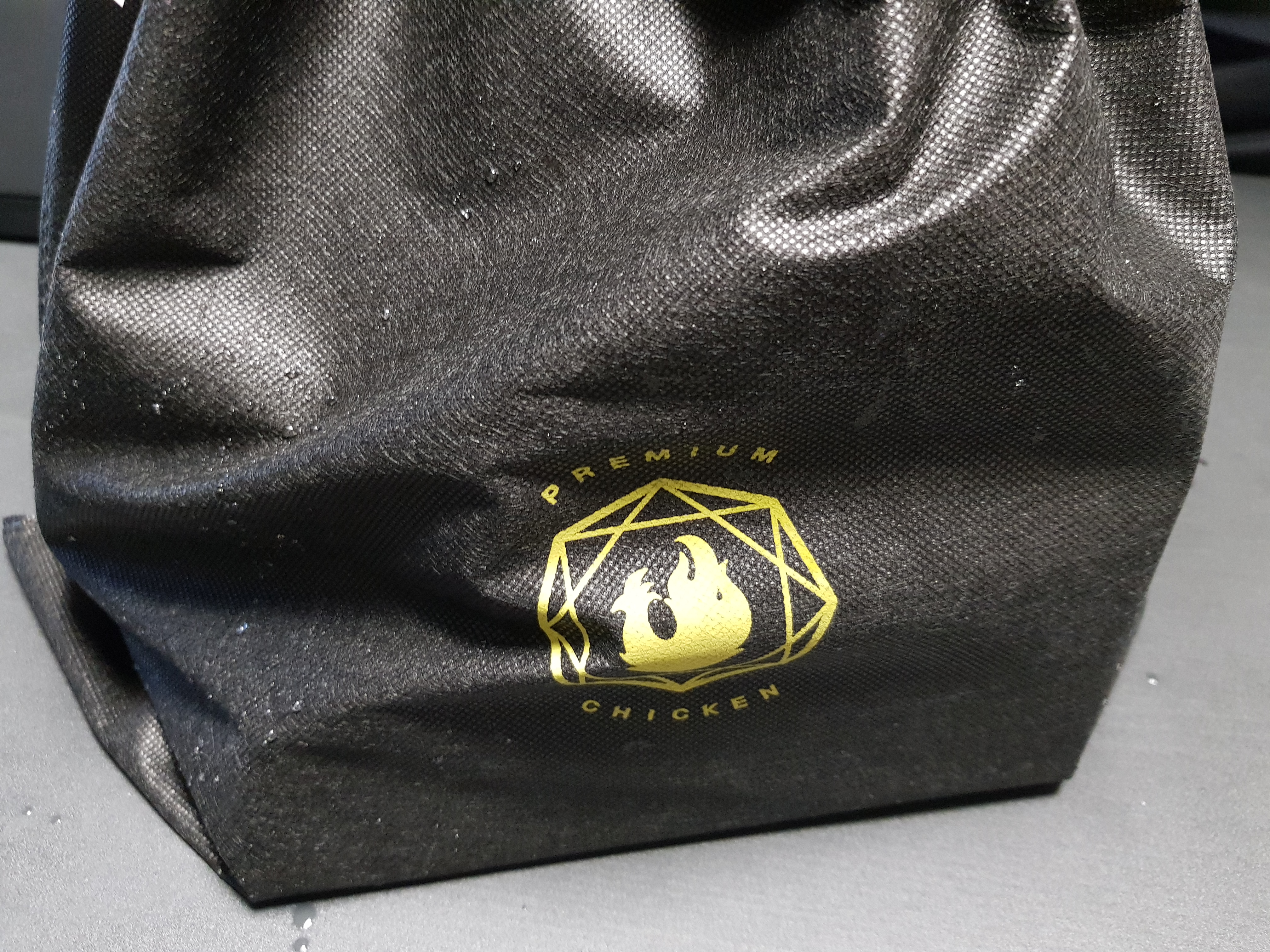 명품치킨답게 더스트백에 왔다.