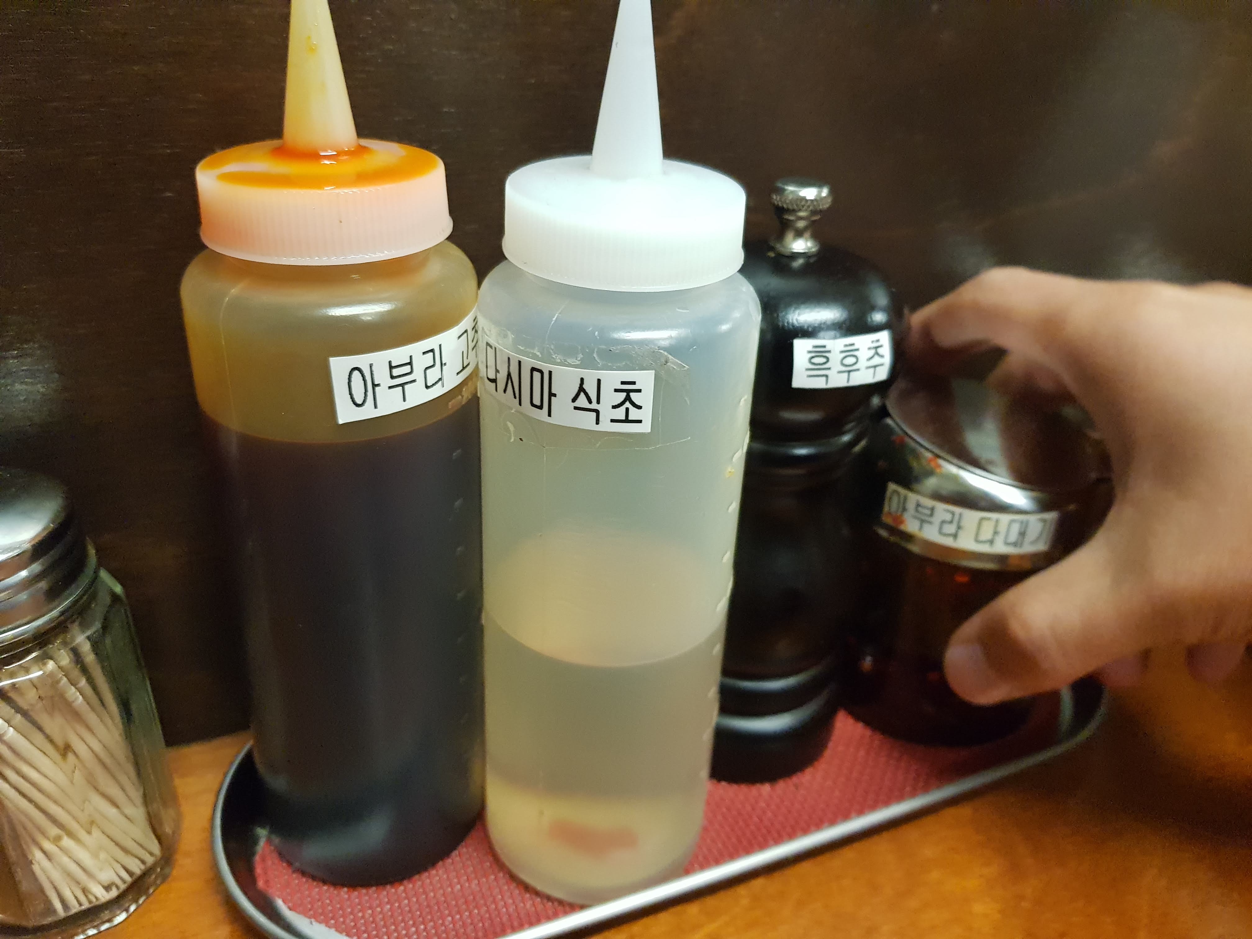 각종 소스들이 구비되어 있다.