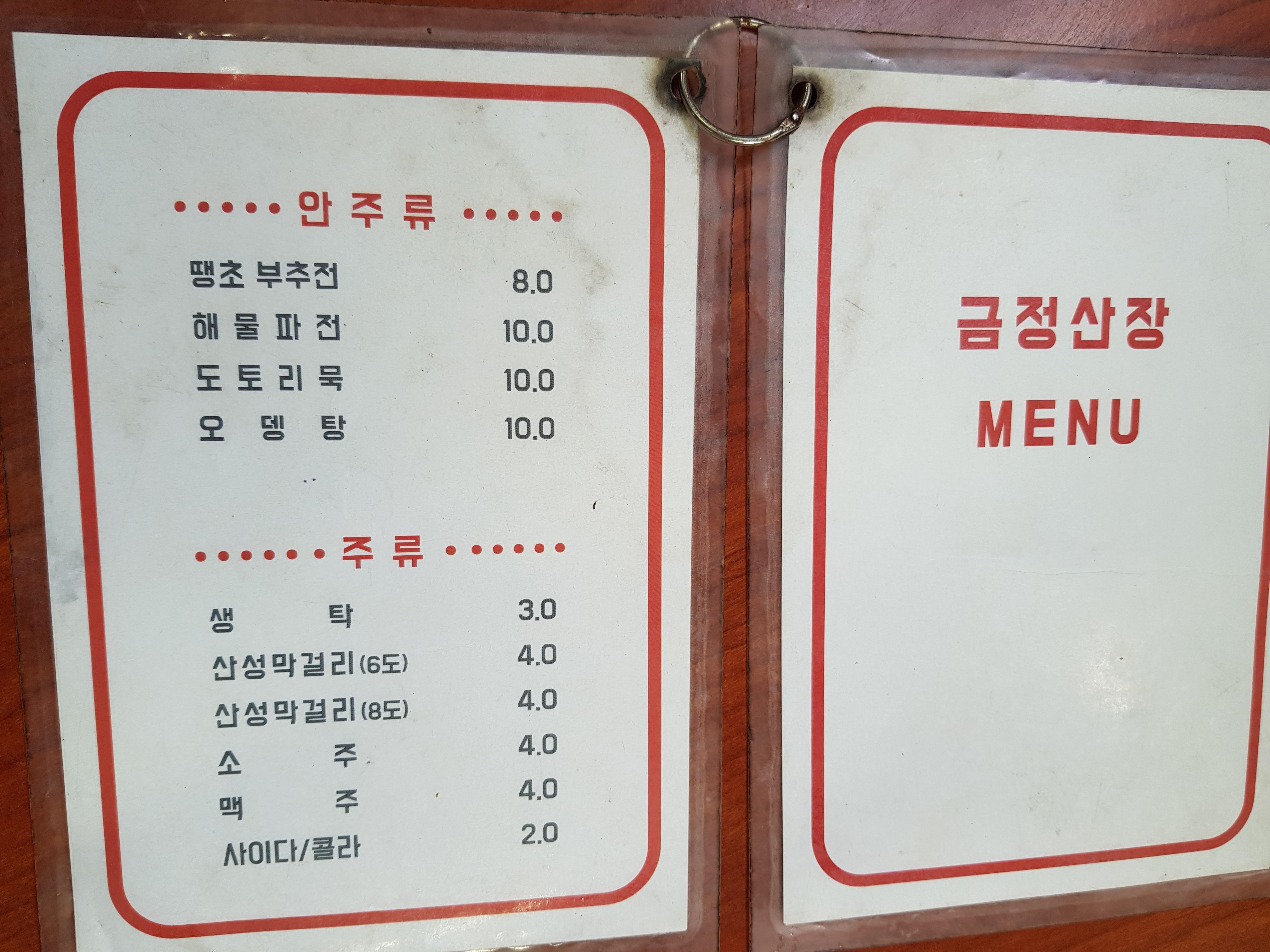 금정산장 메뉴판은 아주 심플했다.