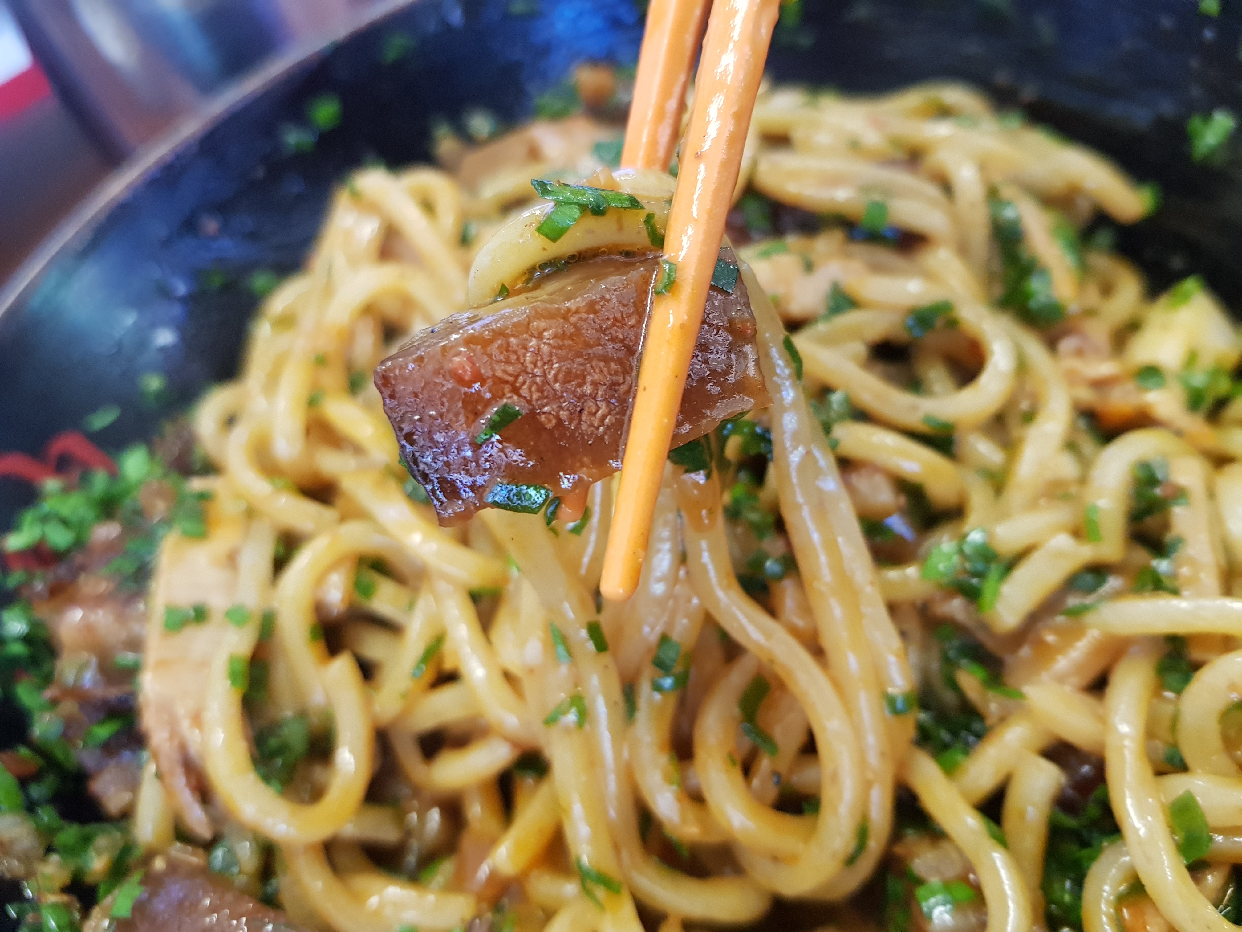 돼지껍데기+우동+매콤함.