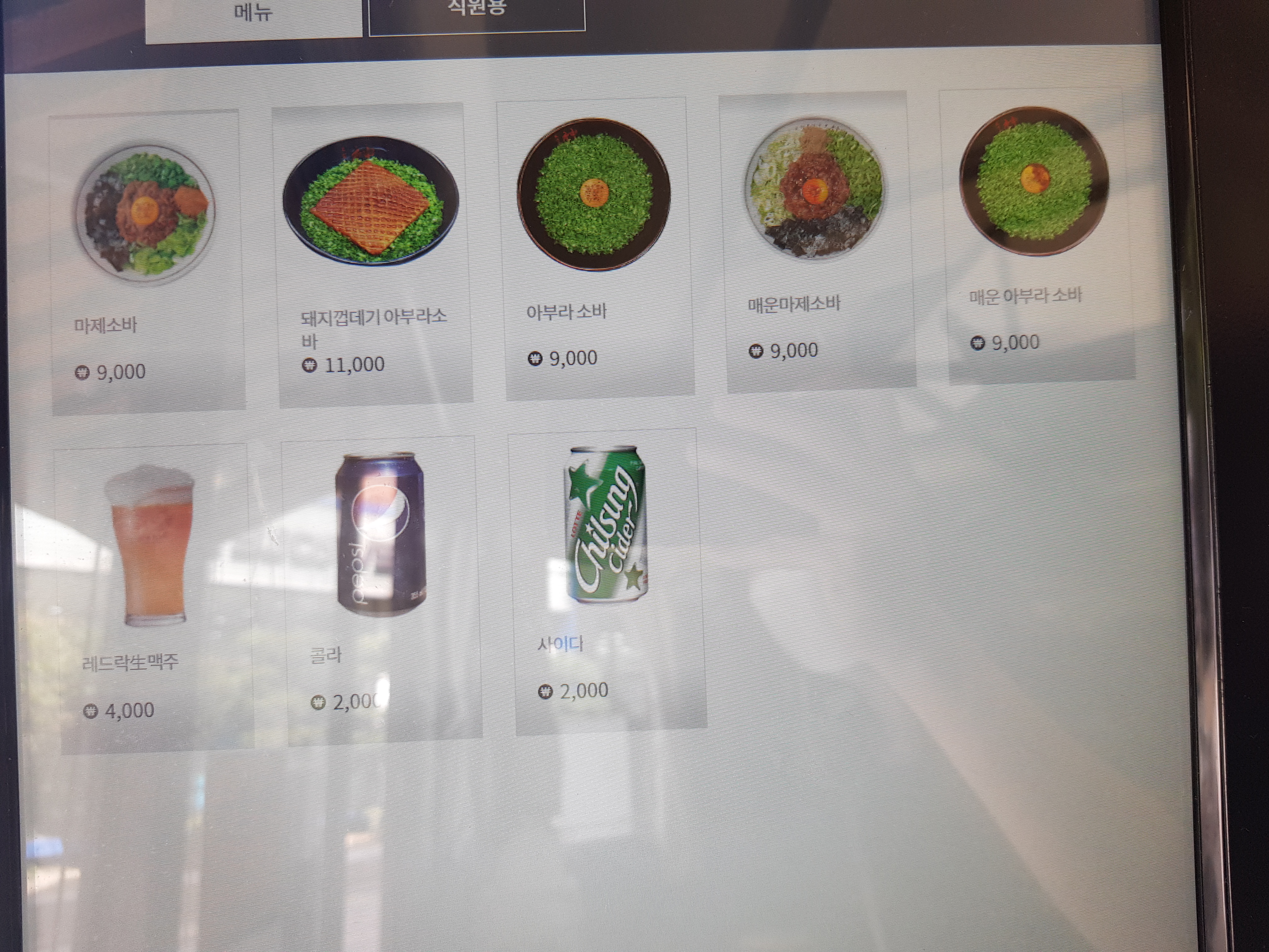 (이 키오스크 메뉴 화면은