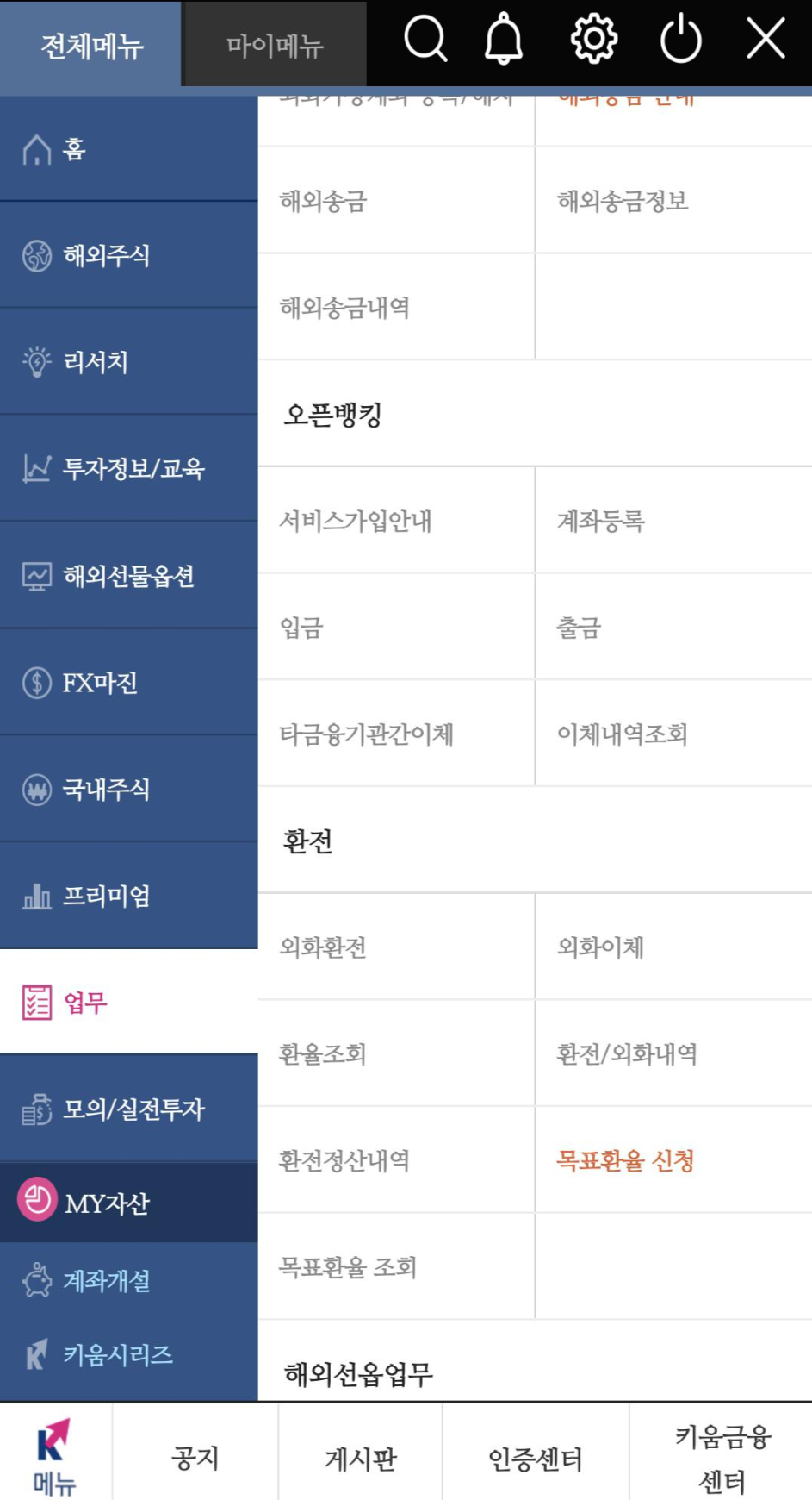 어플 왼쪽 하단의 K메뉴를 누르면