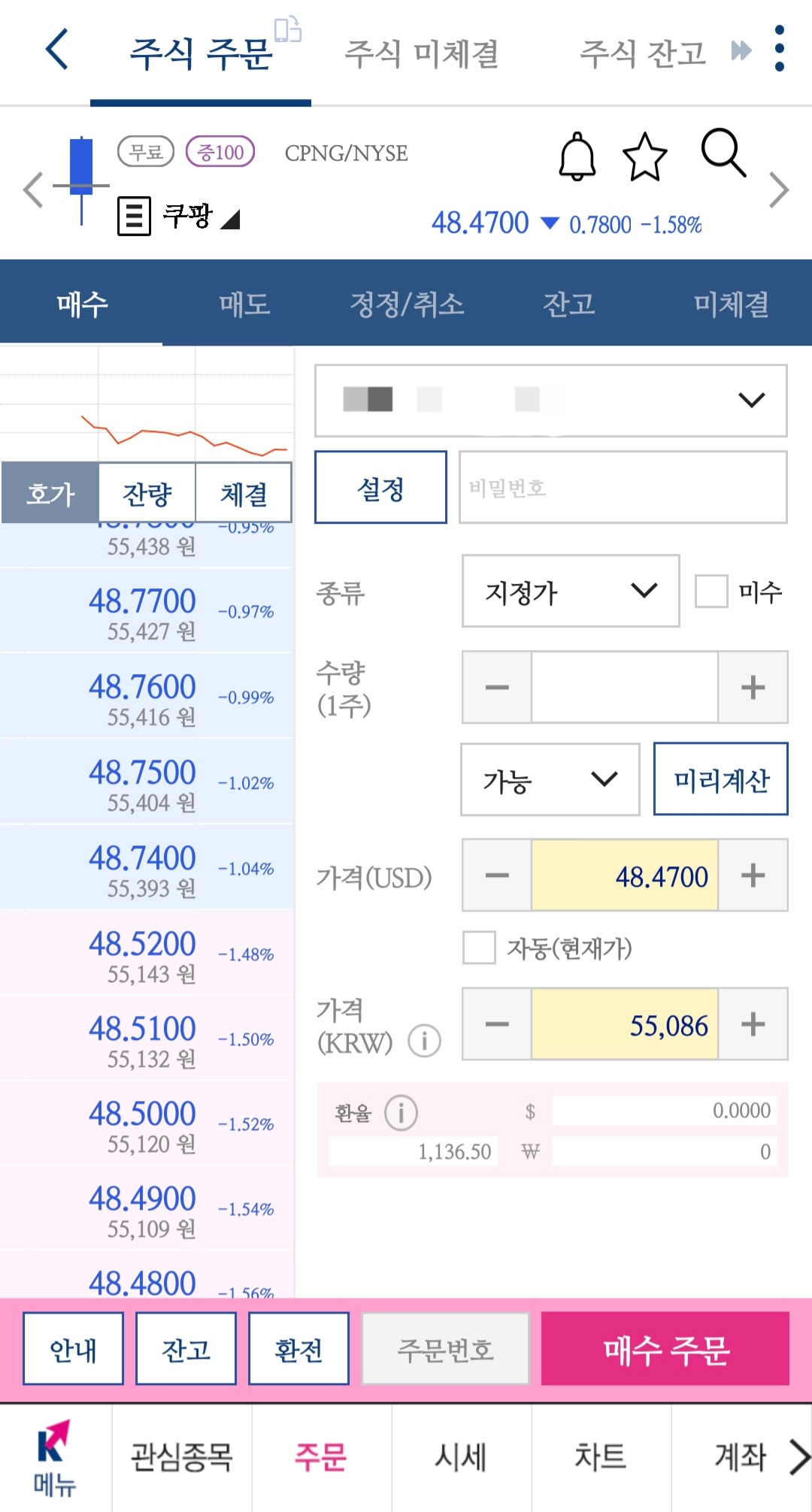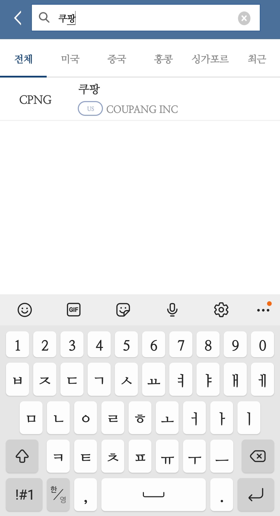 종목명 '쿠팡'이나 CPNG를 입력하면